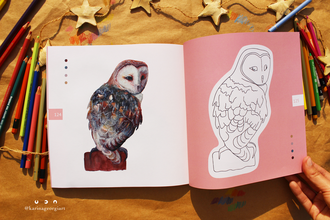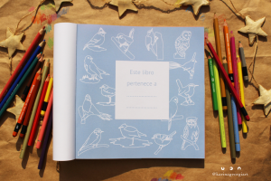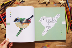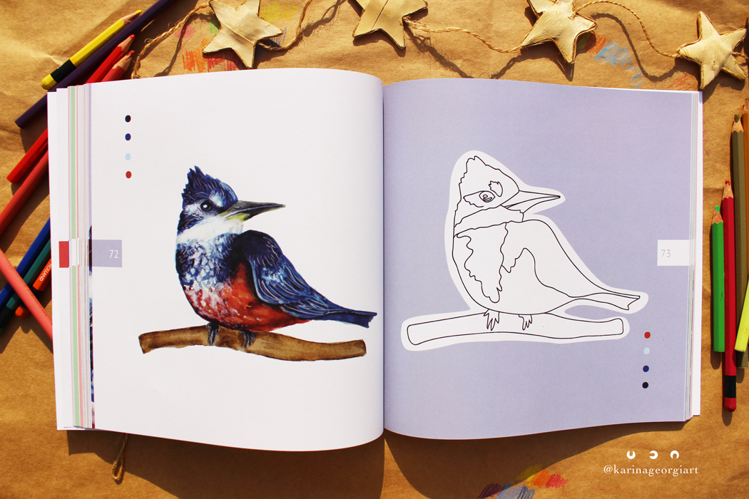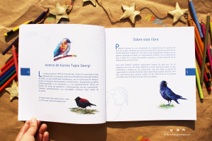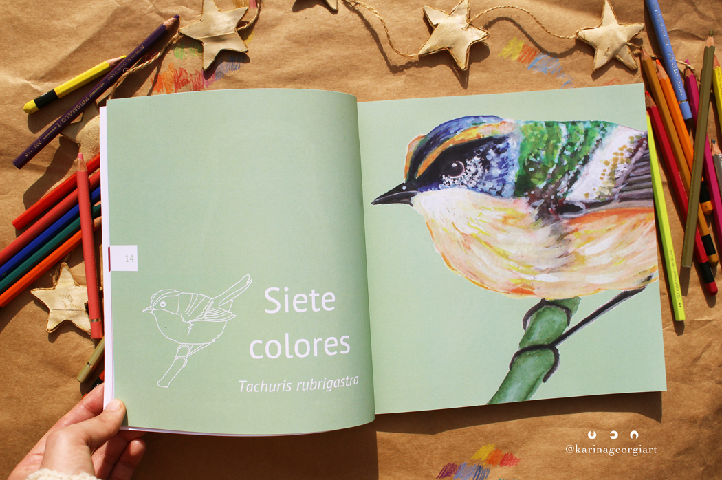 Each illustrated bird comes in his presentation with his Chilean name, the scientist name and a outline illustration to color that includes a reference color palette.